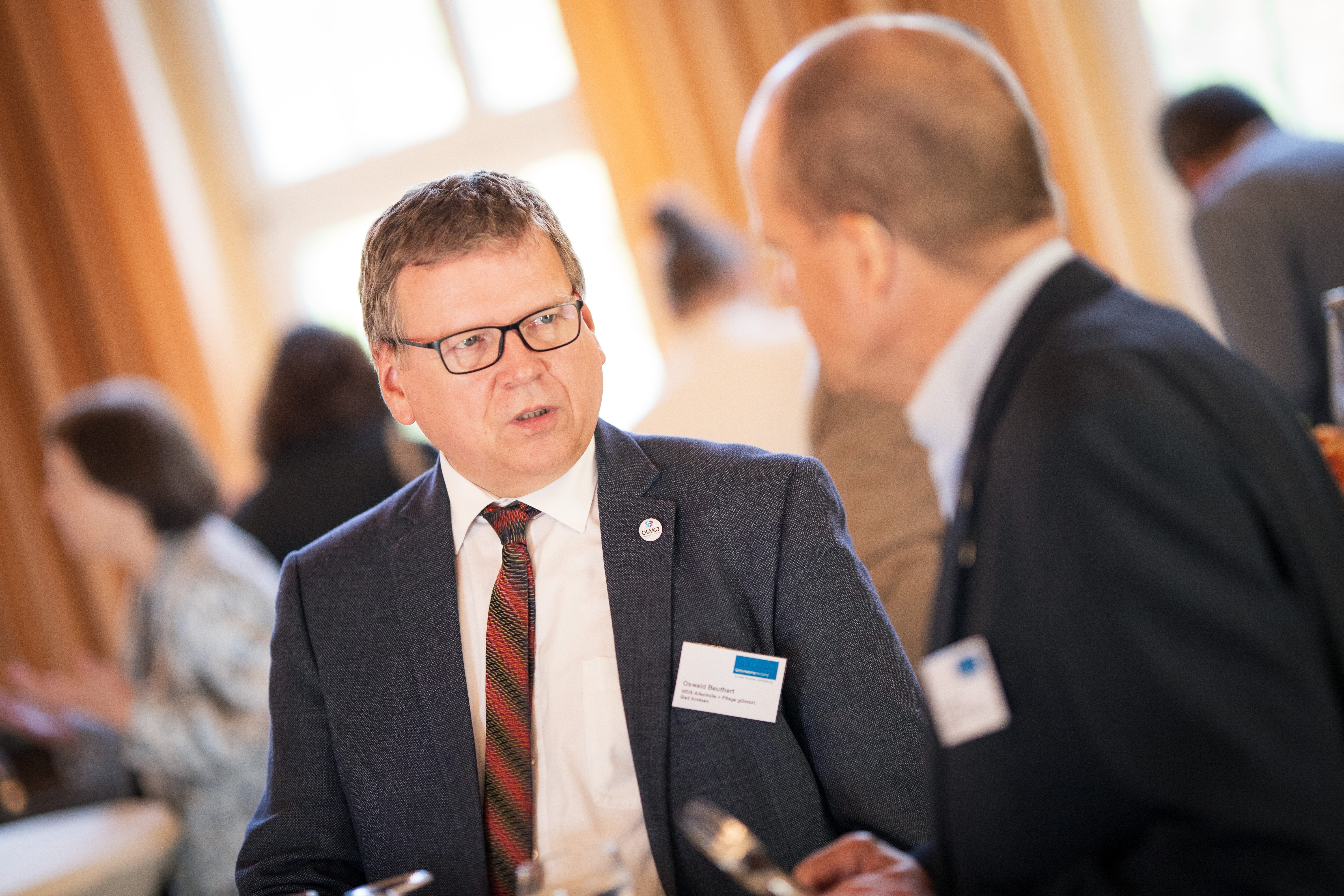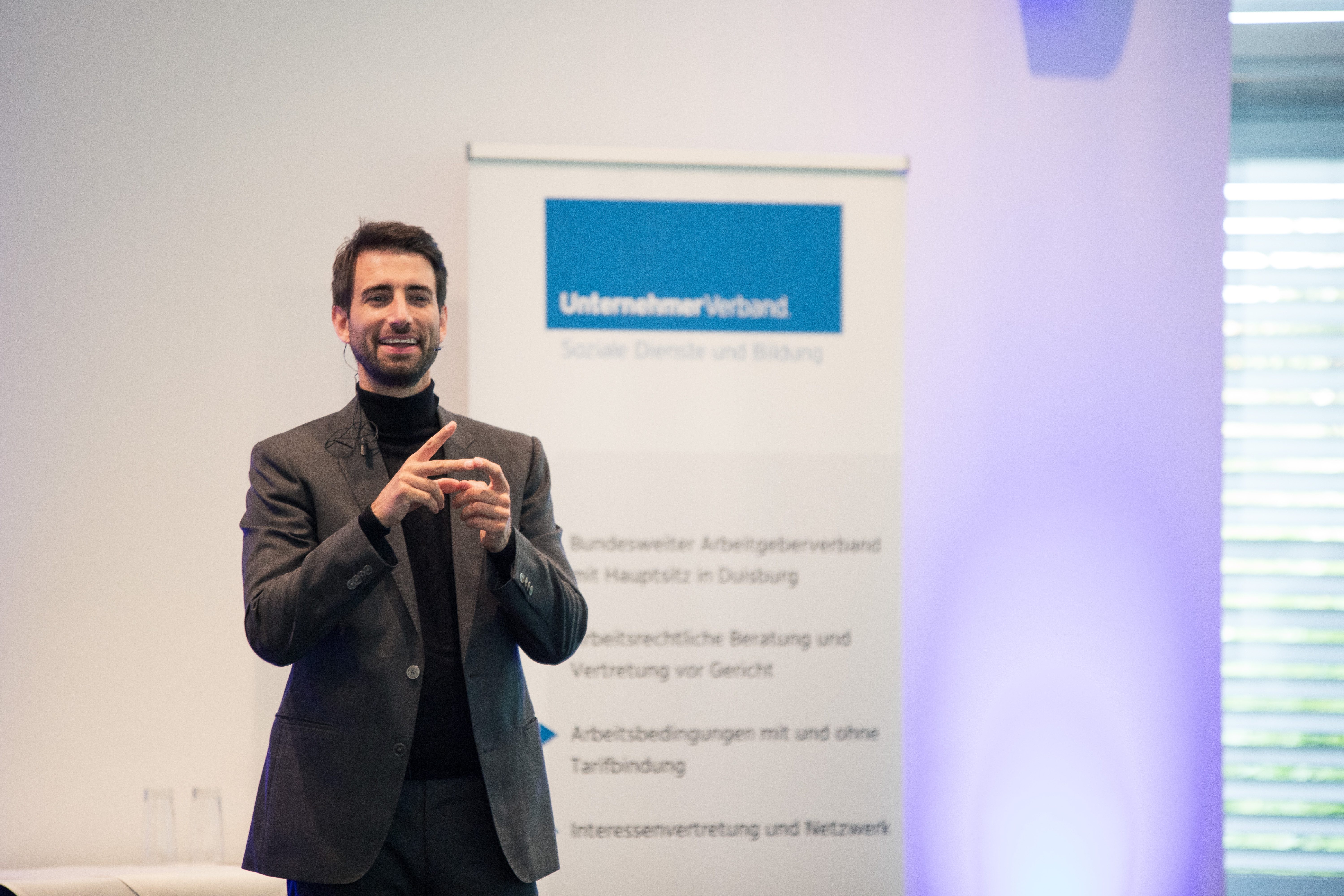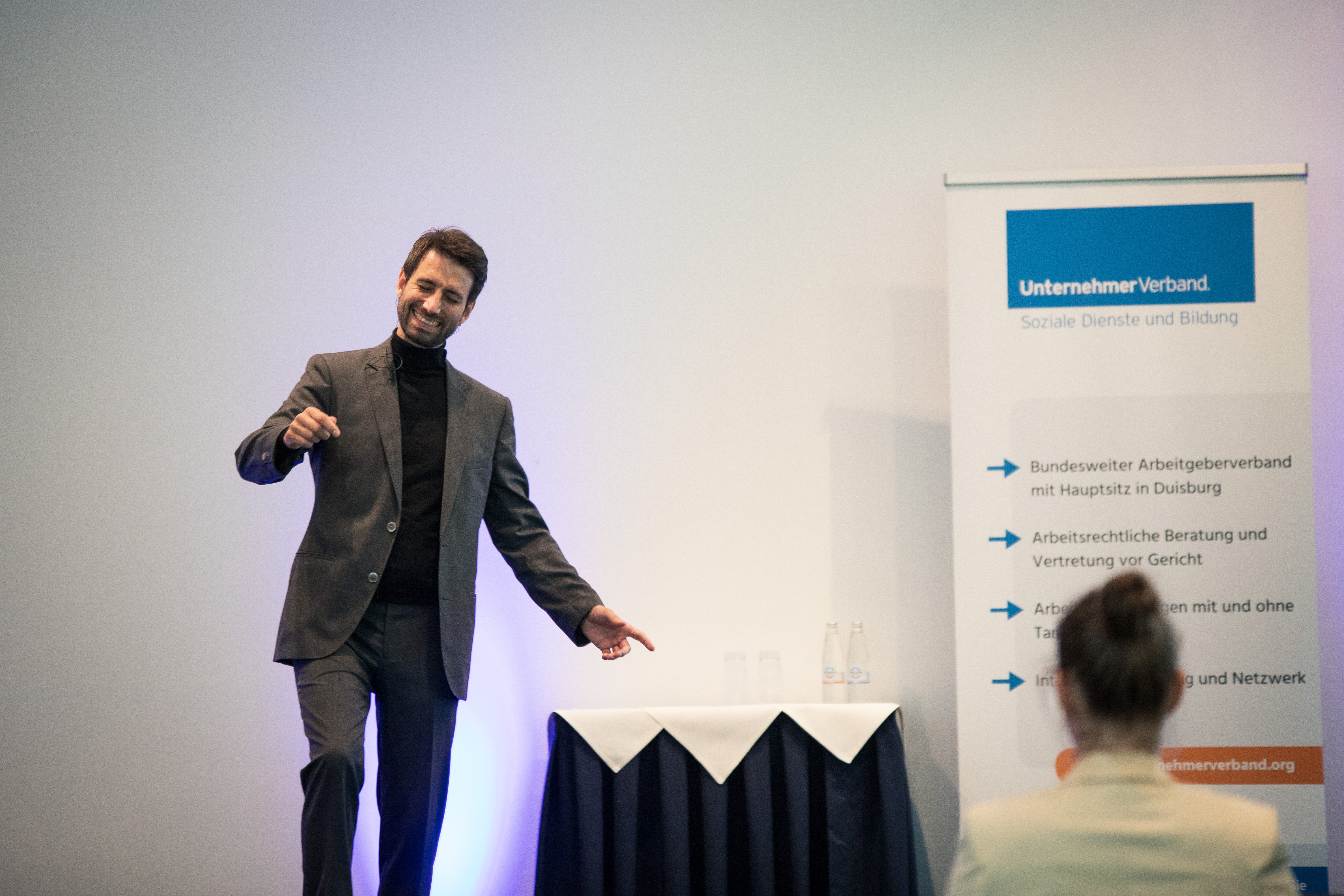 Starre Tarifkorsette ablegen und dafür schlanke und flexible Lösungen schaffen – dies gelang unter anderem auch bei einem weiteren Meilenstein in der Verbandsgeschichte. Die neue Fachgruppe DV.DAH, Dienstgeberverband Diakonische Altenhilfe Hessen, schaffte es 2022, die Arbeitsvertragsrichtlinien der Evangelischen Kirche durch ein innovatives branchen- und kirchengemäßes Tarifwerk mit Vorbildcharakter für die Pflegebranche abzulösen. Jüngst bewährte es sich in einer ersten Entgeltrunde. Hier zeigt sich, dass Sozialpartnerschaft lebt und funktioniert. Bei allem Streit mit den Gewerkschaften: Wenn sich beide Seiten entgegenkommen, gelingen gute Lösungen. Heute ist der Unternehmerverband mit seiner Expertise wichtiger denn je. „Die Sozialwirtschaft steht unter Existenzdruck“, sagte Michael Reichelt in seiner Rede bei der Jubiläumsfeier des Verbandes im Oktober. Der Geschäftsführer der Lebenshilfe Duisburg ist seit zwei Jahren der Vorstandsvorsitzende des Unternehmerverbandes Soziale Dienste und Bildung. „Die Politik handelt paradox: Sie appelliert an die Träger sozialer Dienstleistungen, die Beschäftigten nach Tarifvertrag zu vergüten, weigert sich dann aber häufig, diese Tarifkosten auch vollständig zu refinanzieren. So bringt man eine Branche, die sowieso schon vom Fachkräftemangel gebeutelt und für den gesellschaftlichen Zusammenhalt in Deutschland so wichtig ist, in schiere Existenznot. Wer bestellt, muss auch bezahlen!“ Diese Existenznot betrifft z. B. auch Altenheime – Insolvenzen sind trotz großer Nachfrage bei den alten Menschen keine Seltenheit. „Dabei sollten die Einrichtungen nicht im Preis-, sondern im Qualitätswettbewerb stehen“, hatte der DV.DAH-Sprecher Oswald Beuthert bei einem Politischen Werkstattgespräch „Pflege in Hessen“ gefordert, das ebenfalls im Jubiläumsjahr stattfand.
